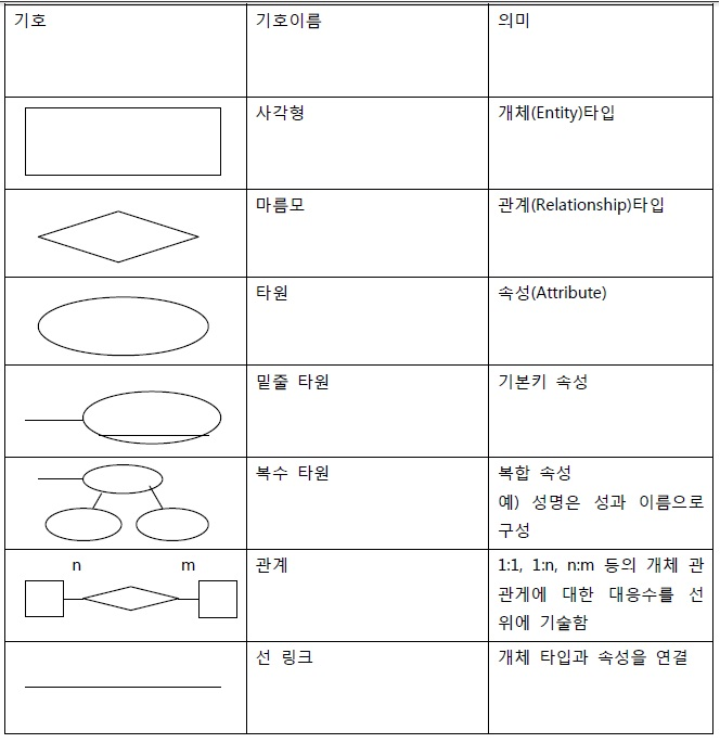 E-R ๋ชจ๋ธ์ ๋ค์์ ๊ฐ์ ์์๋ค๋ก ๊ตฌ์ฑ๋๋ค.