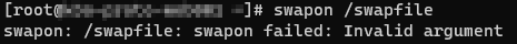 하지만 $swapon 명령어 부분에서 에러가 발생했다. 인자가 부족하다는 에러 메시지를 확인할 수 있는데, CentOS의 경우 fallocate 대신 dd 명령어를 사용해야 된다고 한다.