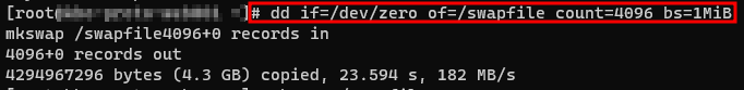 $ dd if=/dev/zero of=/swapfile count=4096 bs=1MiB