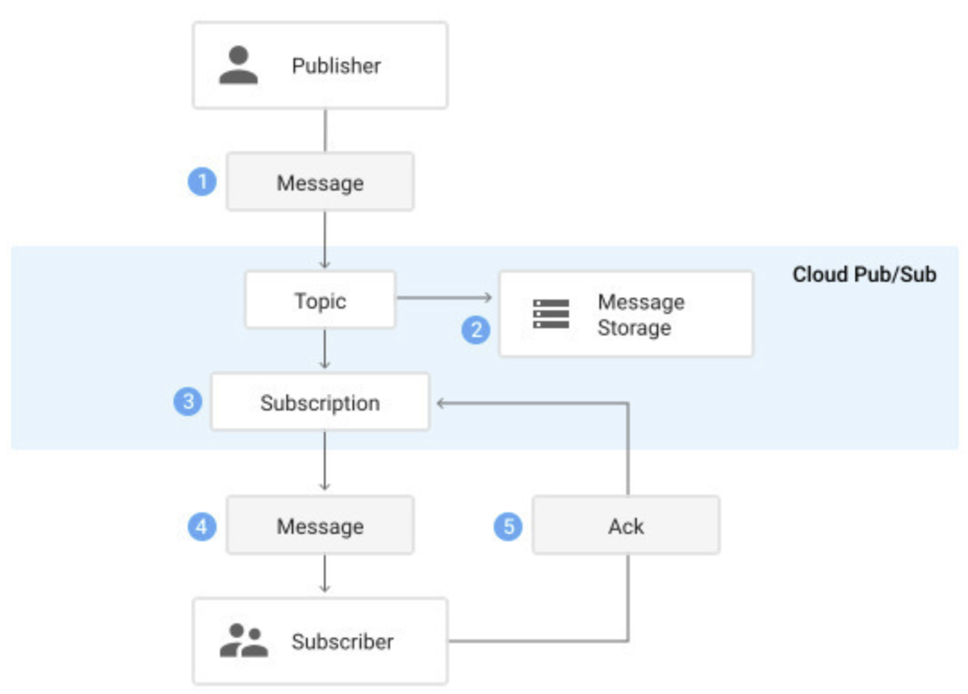 → Mesage는 Publisher로부터 Subscriber에게 최종적으로 전달되는 데이터와 property의 조합이다. 쉽게 얘기하면 서로 다른 API끼리 통신을 할 데이터라고 할 수 있다.