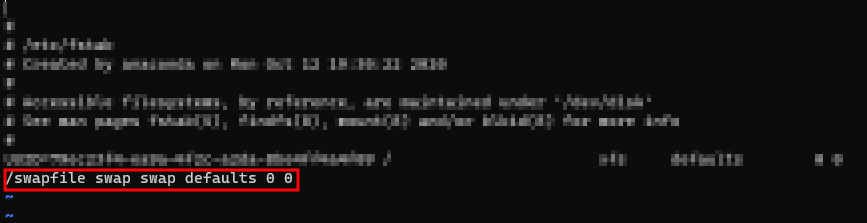 추가 되었다면 이제 서버가 재부팅 되어도 Swap Memory가 유지될 수 있게끔 설정이 완료되었다.