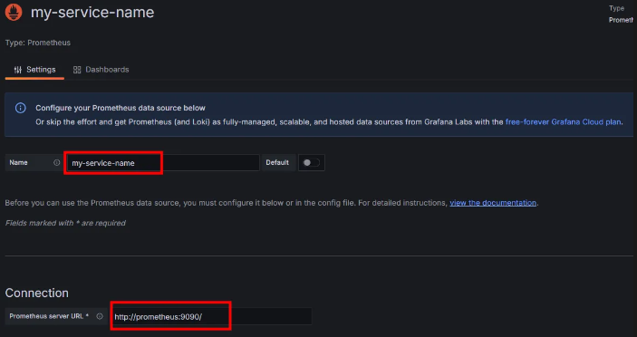 Prometheus에 대한 Connection을 지정하는 방법과 똑같다.